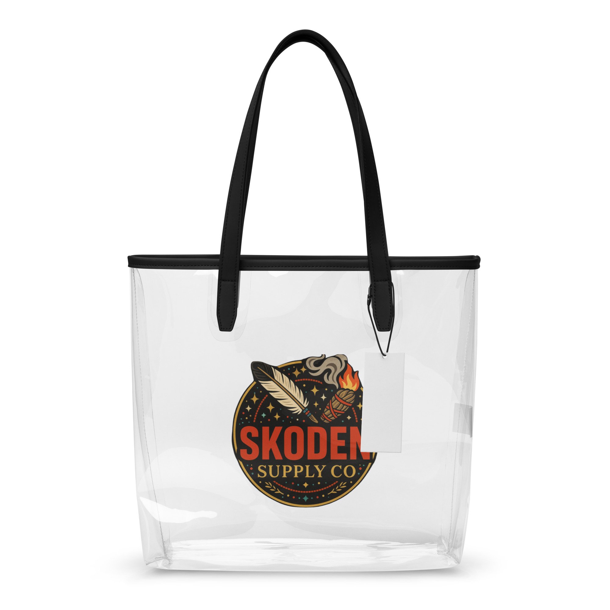 Show off your support in style. This clear tote reps the brand loud and proud—perfect for concerts, beach days, or flexin’ your auntie energy everywhere you go. Bold, durable, and 100% Skoden